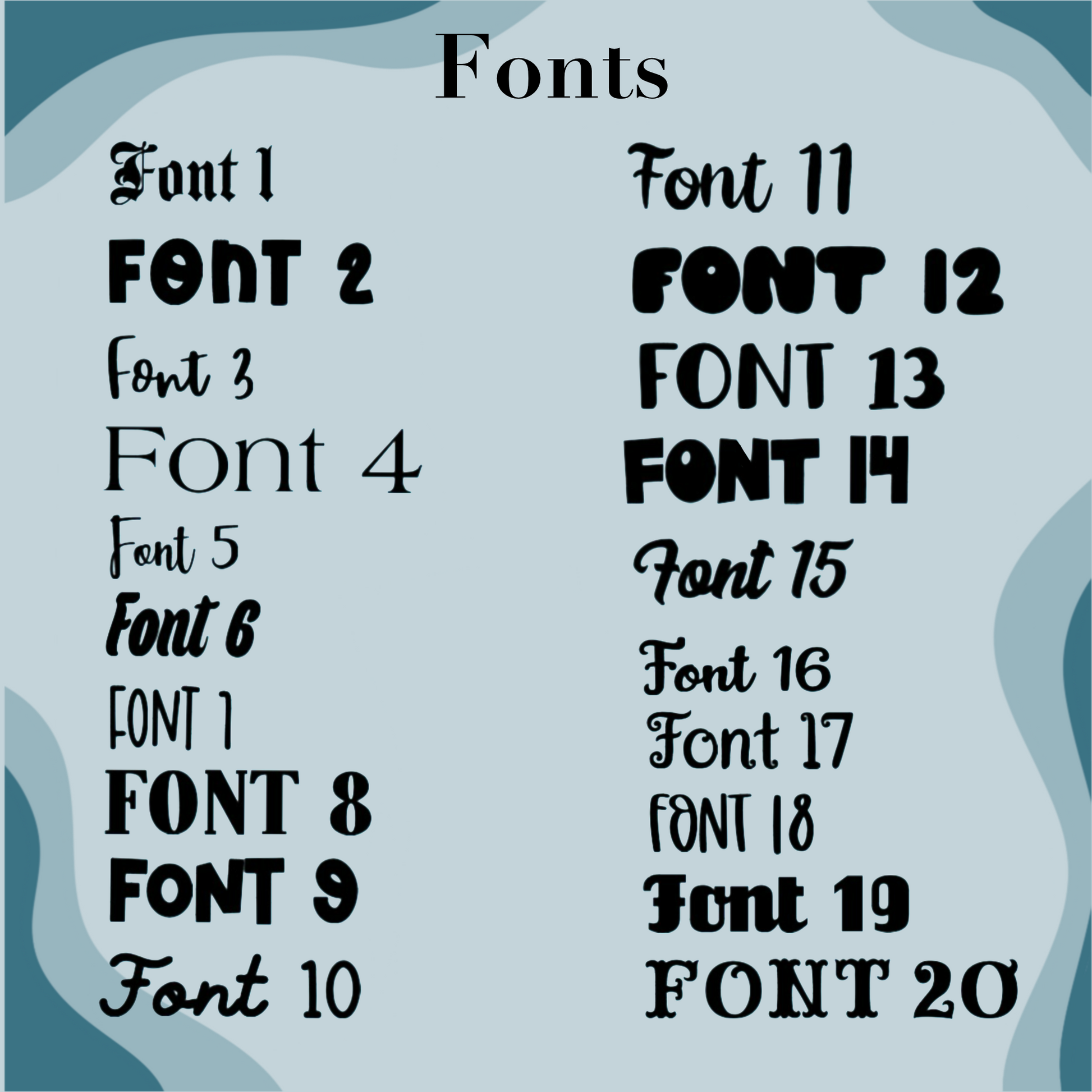Multiple fonts to choose from as well, you can choose between standard or outlined font, if you want the name outlined you can pick two vinyl colours.